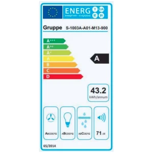 Ο απορροφητήρας καμινάδα Gruppe Levante της εταιρείας Gruppe, ενεργειακής κλάσης A, τοποθετείται στον τοίχο. Είναι σχεδιασμένος με ένα διακοσμητικό που καλύπτει τη σωλήνα εξαγωγής αέρα και μοιάζει με καμινάδα.